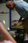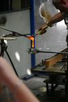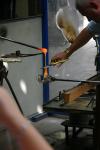 Adding a handle to a blank in the glass-blowing department at Waterford Crystal.