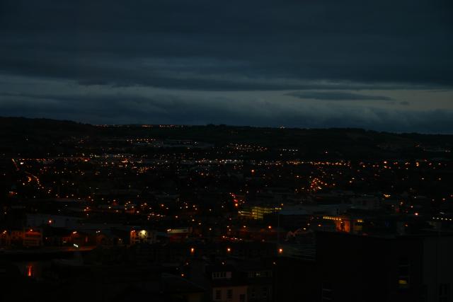 Night-time view over Cork, taken from our hotel room.